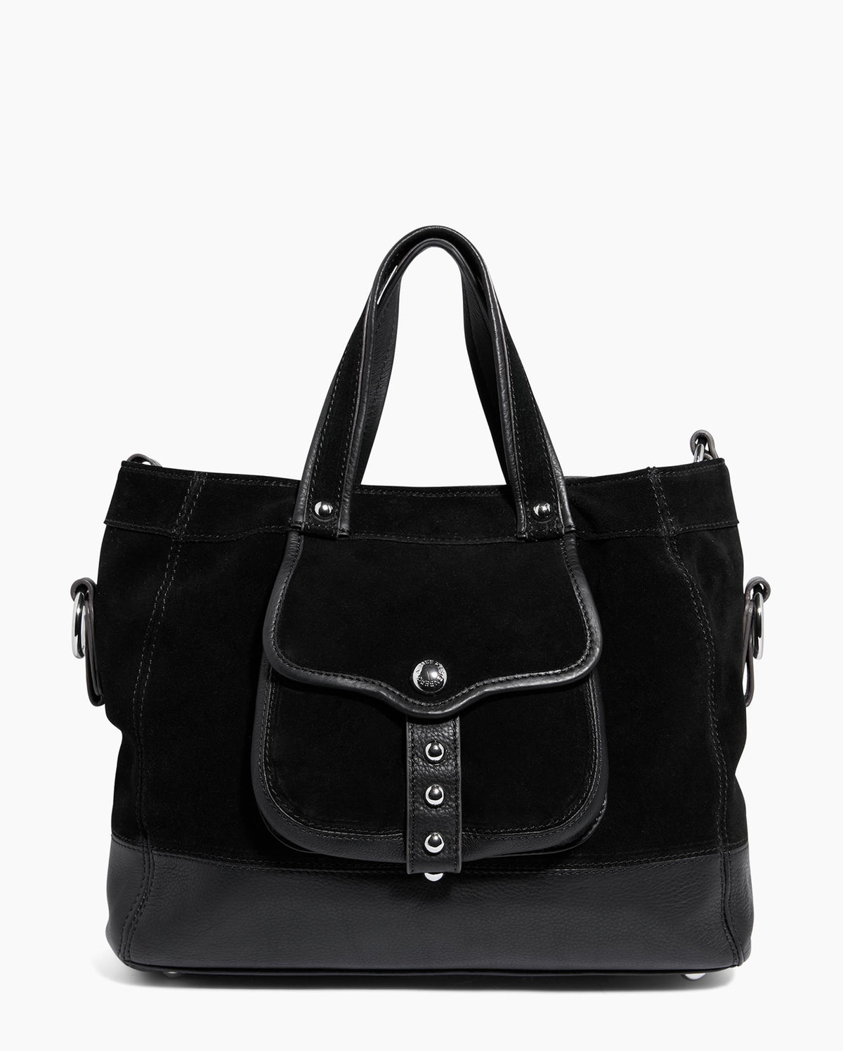 The Great Escape Convertible Shopper offers endless versatility; it has top handles and a shoulder strap for effortless styling. This silhouette transforms with a simple belt clip, allowing you to change the shape to suit your day. This shopper features the oversized studding details that are a signature of the Great Escape Collection.