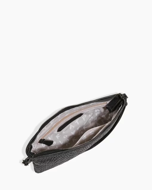 The Woven Wristlet Pouch is the ultimate grab-and-go piece, with a removable wristlet strap to convert to a true clutch.